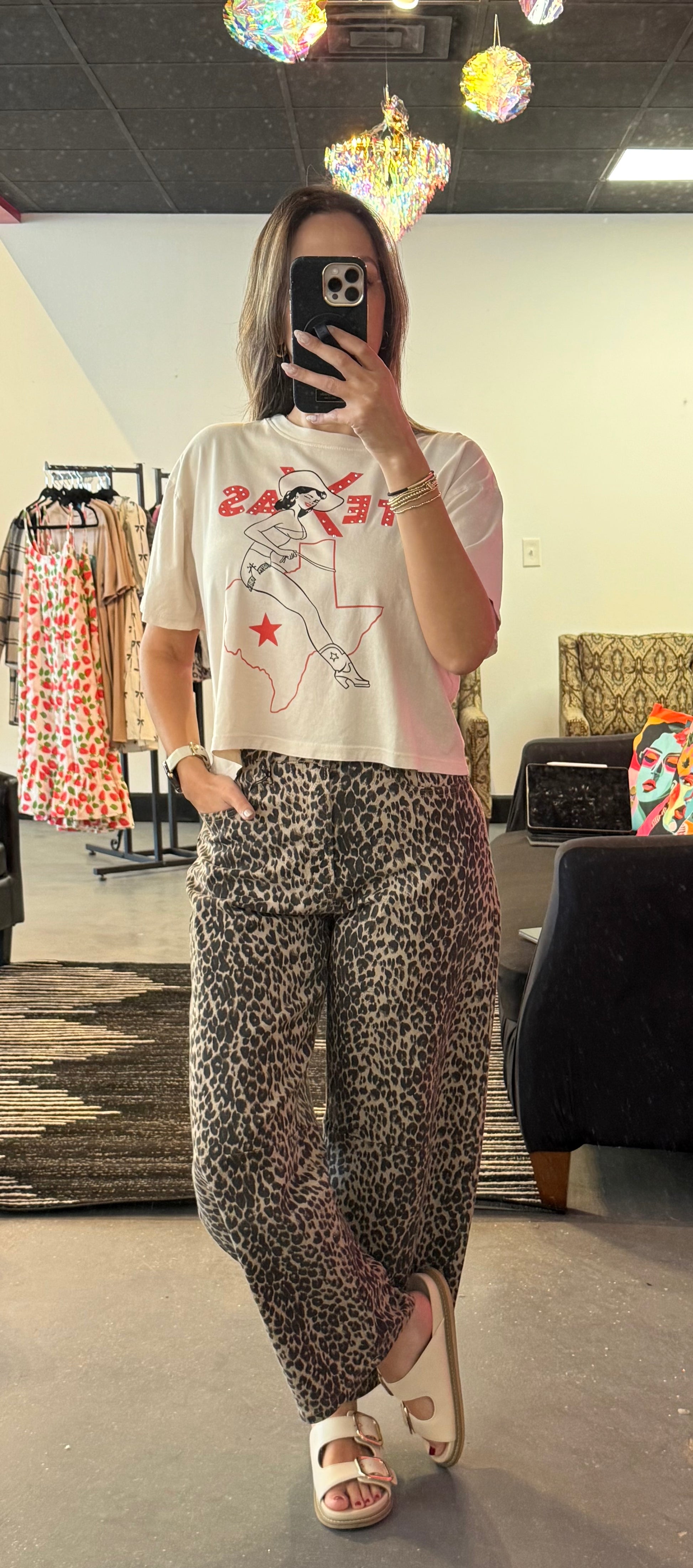 Show off your Lone Star pride with a playful western twist! This soft boy fit tee features a retro-inspired cowgirl graphic, bold TEXAS lettering with rhinestone accents, and a standout star detail that’s as fun as it is iconic.